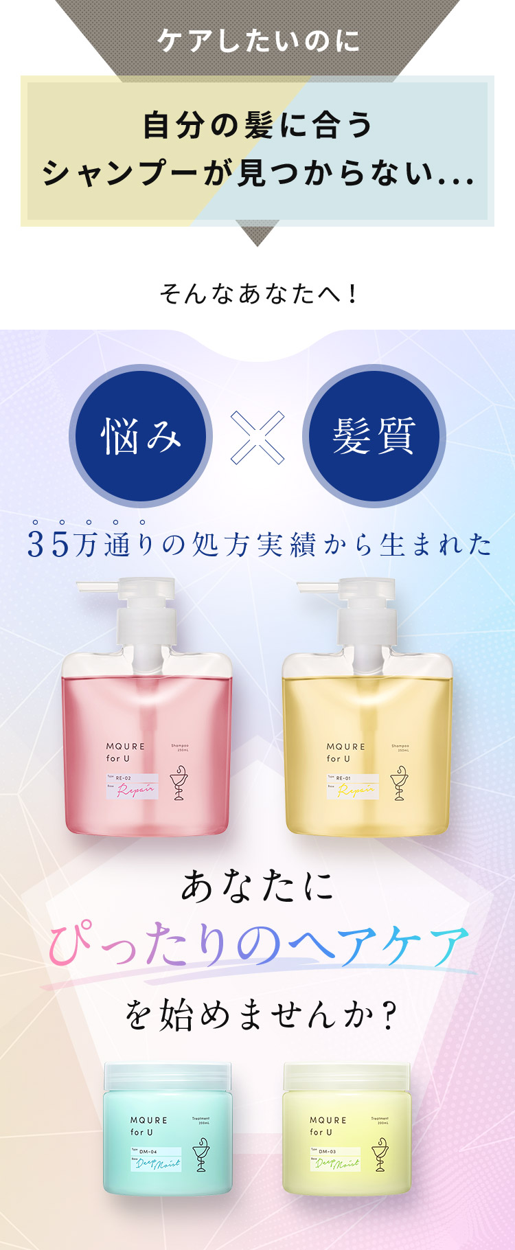 35万通りの処方実績から誕生!パーソナライズヘアケアMQURE(エムキュア)