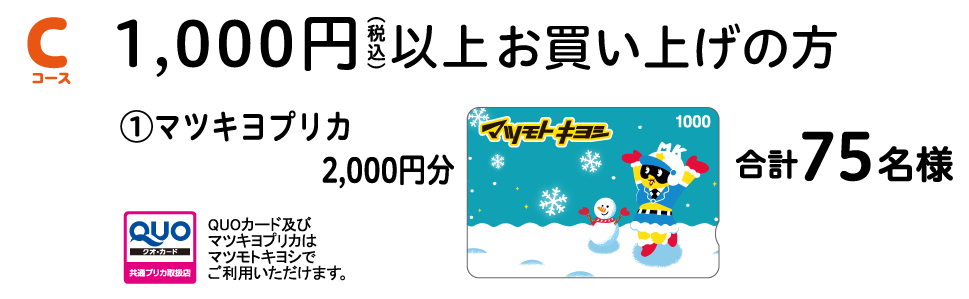 マツモトキヨシ各店でご利用いただける、便利なマツキヨプリカ2,000円分です。日々のお買い物でご利用ください。